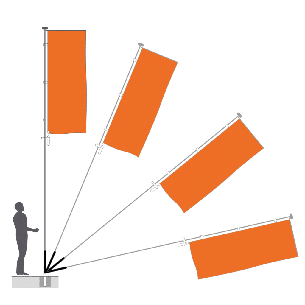 | * “À potence” et “À potence ascensionnelle” – le drapeau est visible et sans vent (grâce au bras rotatif horizontal). ** Le type “à potence” n’est pas équipé avec drisse. Pour changer le drapeau doit abaisser le mât. Les modèles “Standard antivol” et “À potence ascensionnelle” peuvent être équipés en option de treuil pour lever et abaisser le drapeau. |