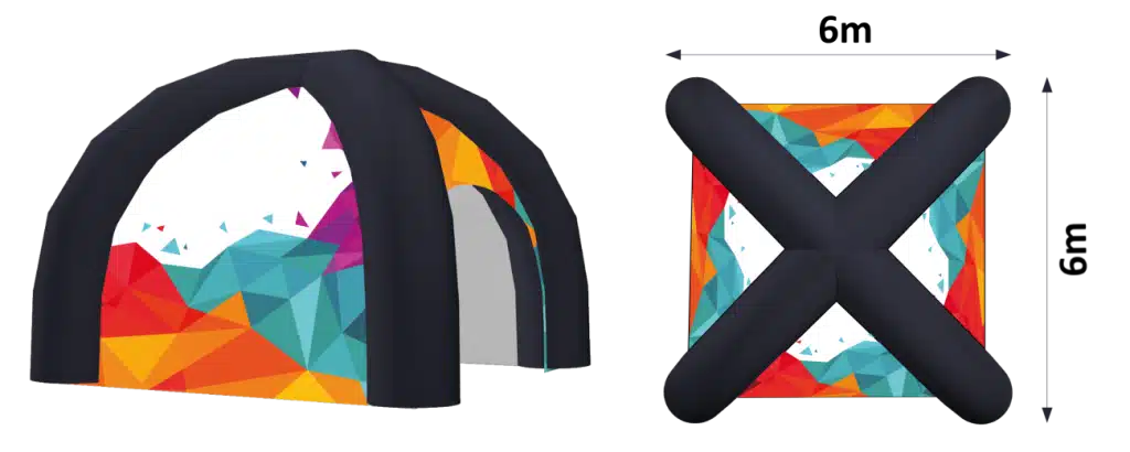 Facili da montare e completamente personalizzabili, i nostri gazebo pubblicitari gonfiabili 6x6m garantiscono al tuo marchio un’elevata visibilità e sono adatti sia per eventi interni che esterni.